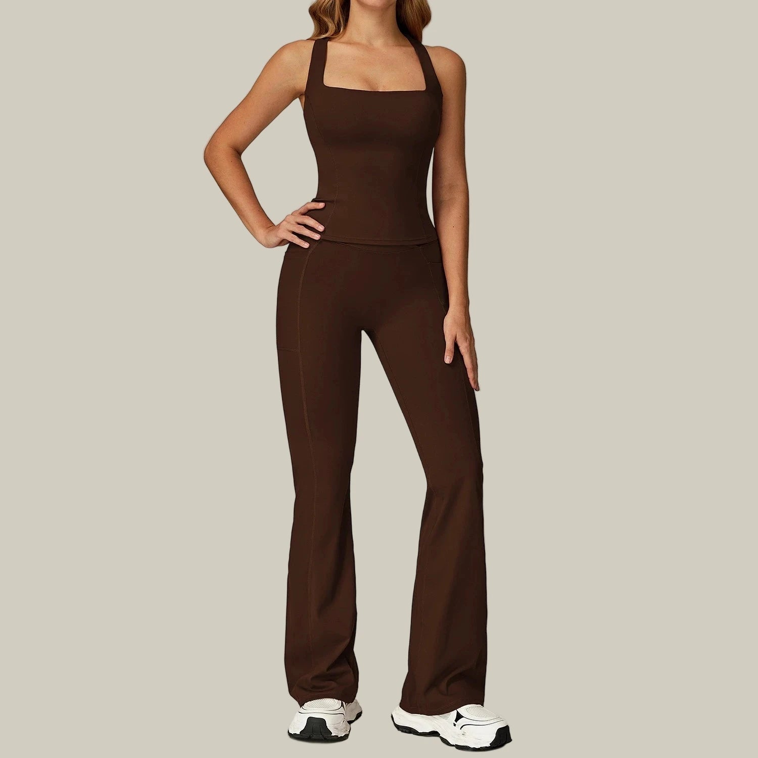 Effortless form meets mindful performance. The Studio Balance Set features a sleek cross-back tank and high-waist flare leggings designed for fluid movement and everyday comfort. Crafted from a smooth, breathable fabric that moves with you—ideal for yoga, training, or off-duty moments.