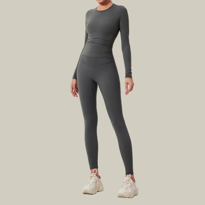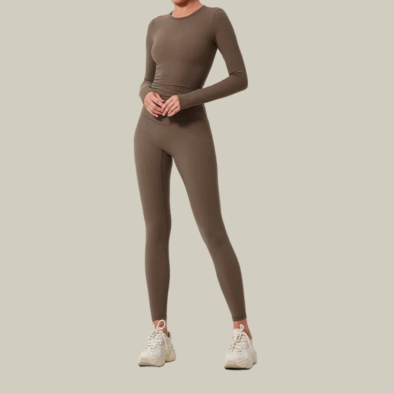 - Design: Long-sleeve cropped top + high-waisted leggings