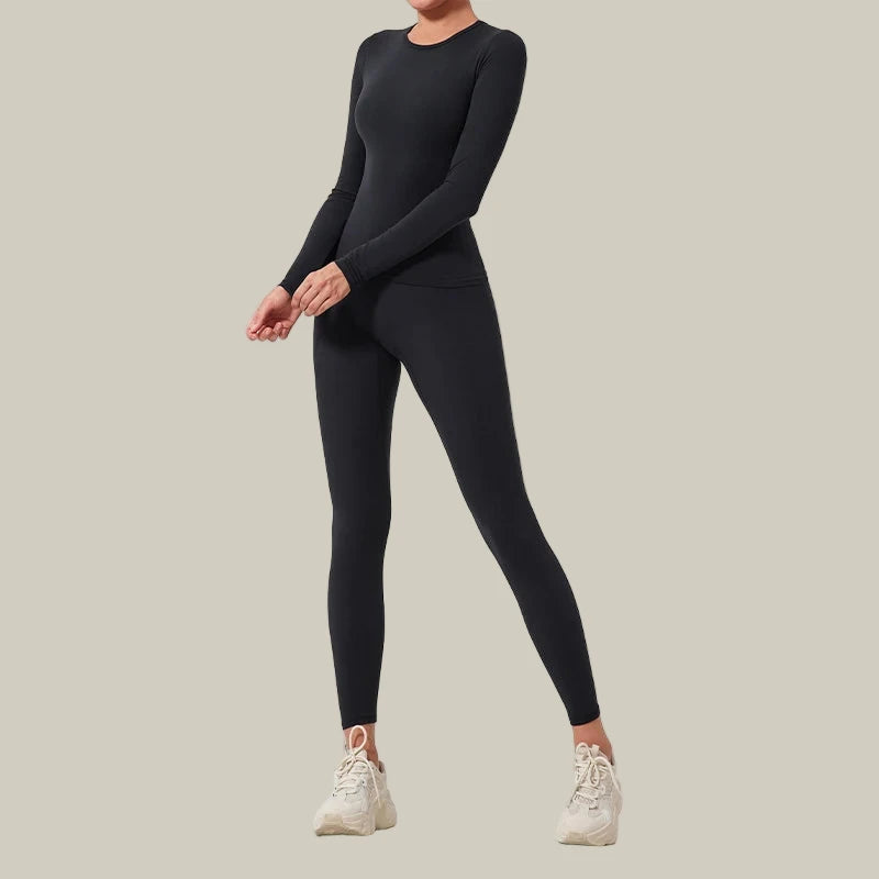 Move freely, breathe deeply, and feel supported in every motion. The CoreFlex Long Sleeve Set combines a contouring high-waist legging with a sculpted long-sleeve top, designed to flow with your body through every workout. Its nylon–spandex blend delivers gentle compression, four-way stretch, and a sleek, second-skin feel. Perfect for cool-weather training or mindful studio sessions.