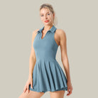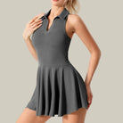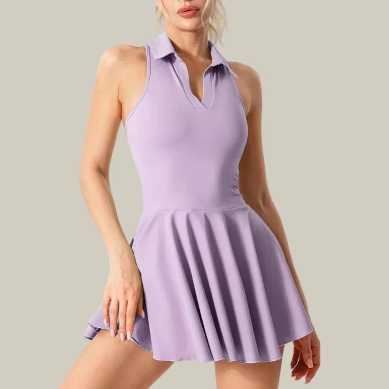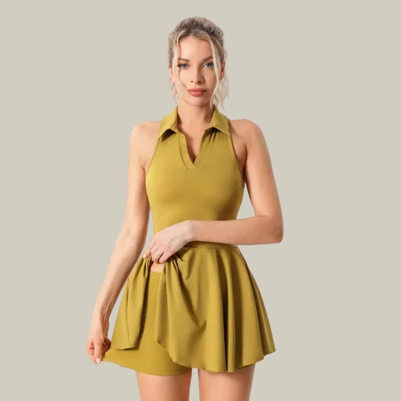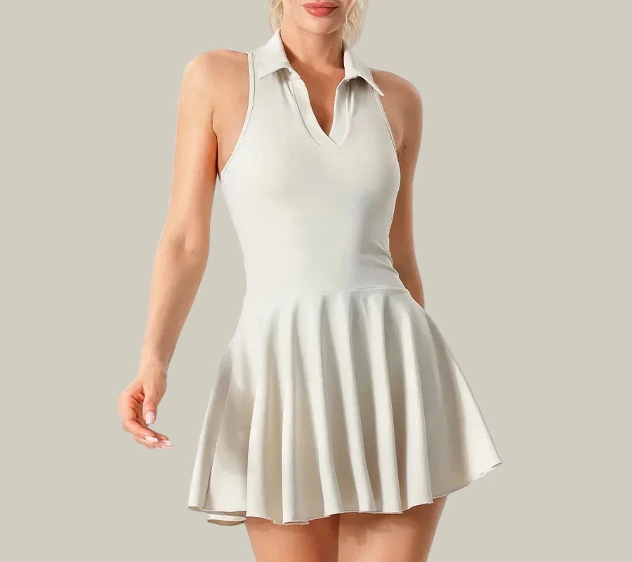 Play with elegance and ease. This tennis-inspired set combines a soft, high-stretch fabric with a sleek, feminine silhouette for total freedom of movement. The built-in shorts provide comfort and coverage, while the quick-dry, breathable material keeps you cool on and off the court. Designed for performance and everyday style, it delivers that clean, minimalist aesthetic — perfect for tennis, golf, or effortless athleisure.