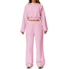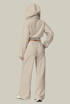 • Two-piece hoodie and straight pants set with relaxed silhouette