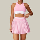 Effortless elegance meets athletic performance. The Flow Skirt Set blends a supportive sports bra with a sleek, pleated skirt featuring a built-in base layer for confident movement. Crafted from a high-stretch nylon–spandex blend, it delivers a soft, breathable, and quick-dry feel — designed for yoga, tennis, and everyday active wear.