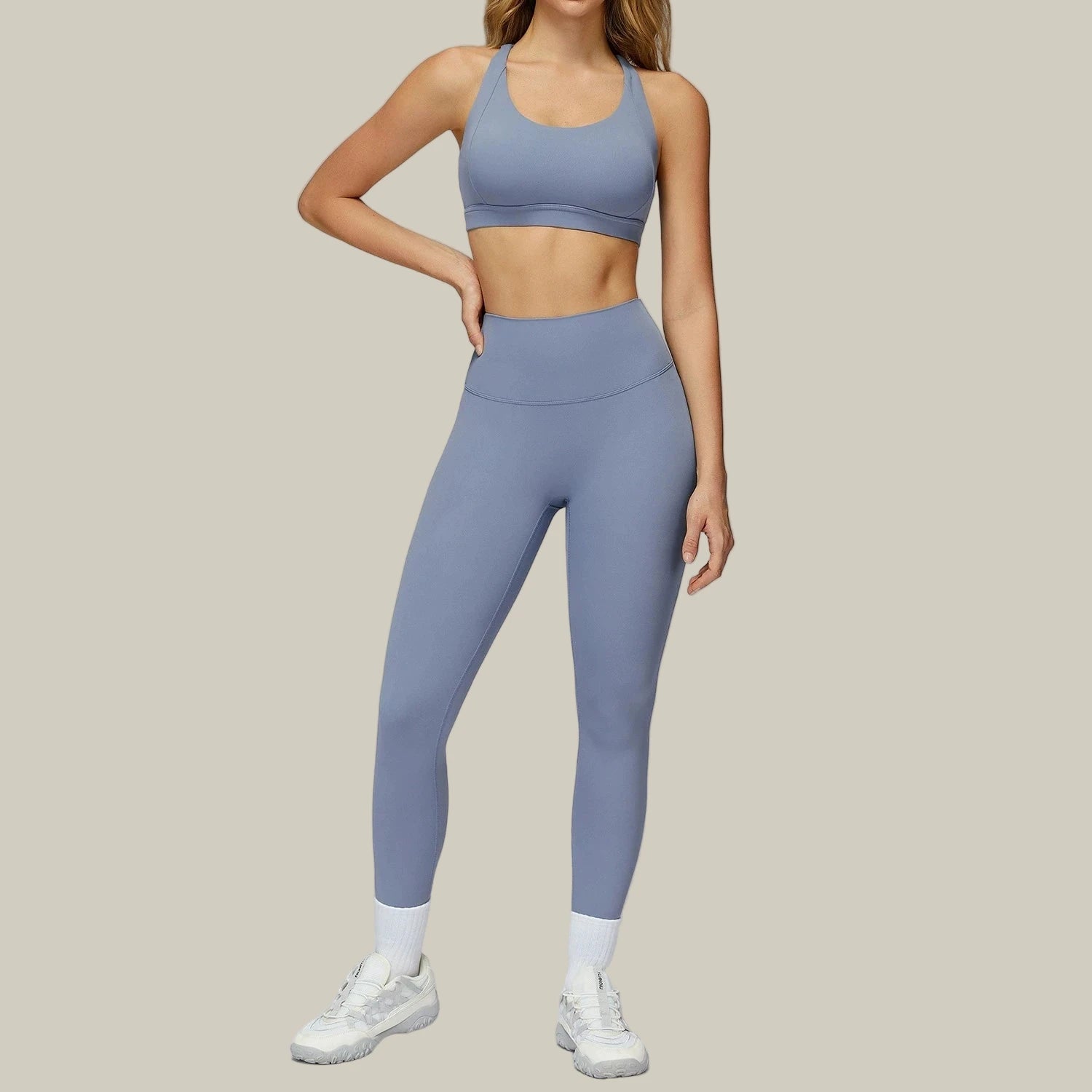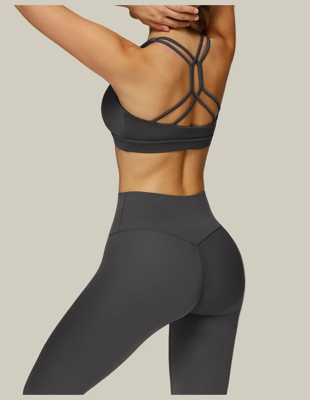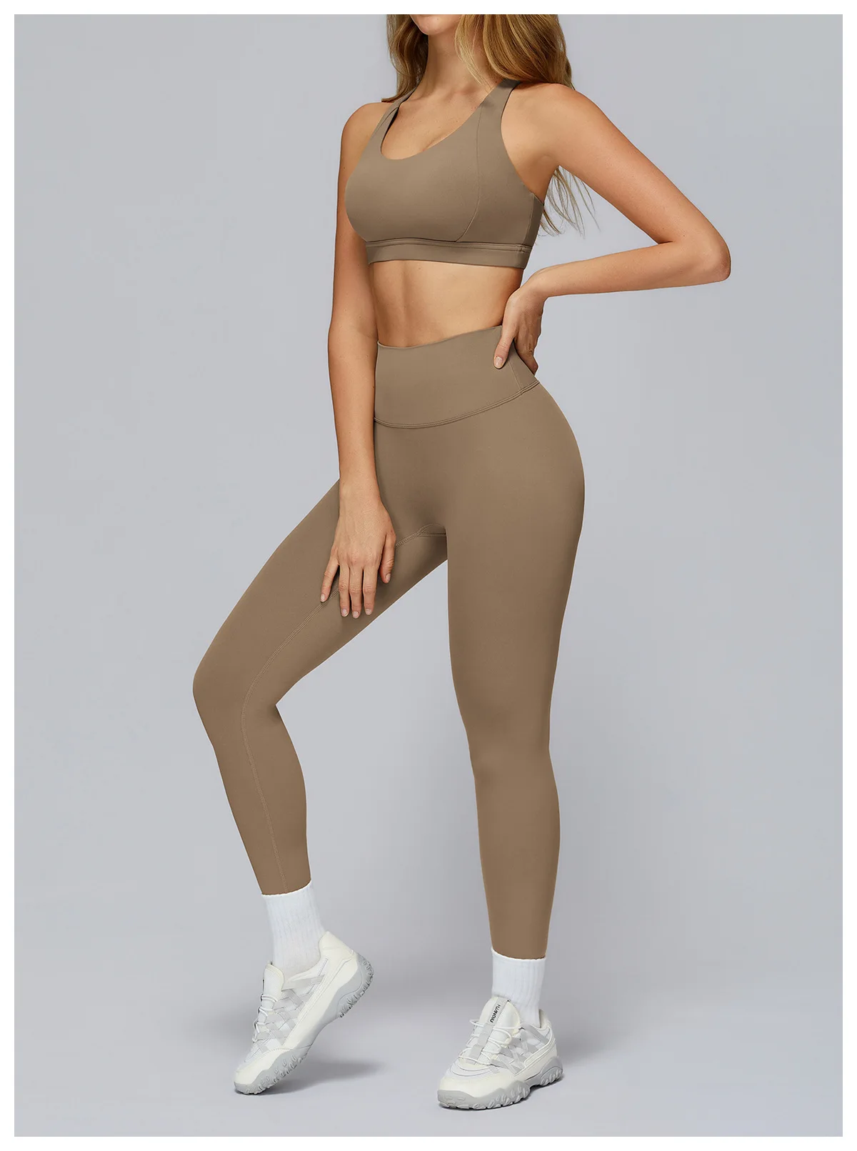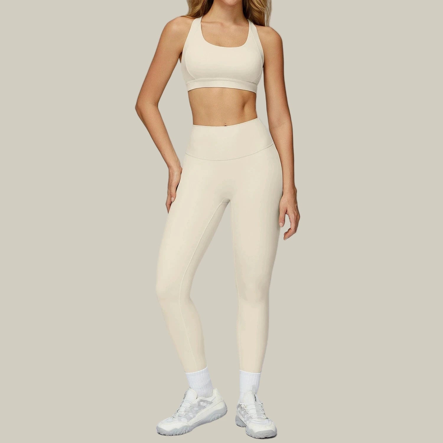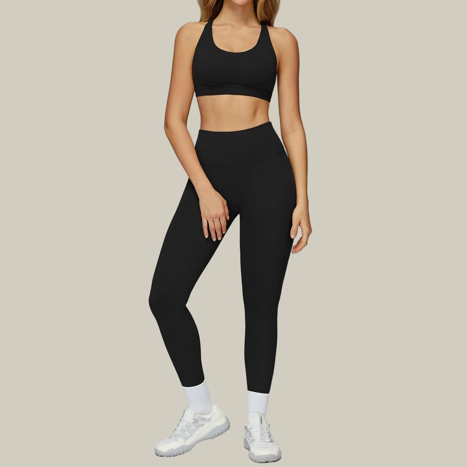 Confidence meets elegance. This two-piece yoga set is designed to sculpt, support, and move with you through every workout. The hollow-out back sports bra offers breathability and a modern, feminine edge, while the high-waist leggings deliver gentle compression and a sleek contouring fit. Made from smooth, quick-dry fabric, it provides comfort and flexibility from studio sessions to outdoor training. Minimalist, flattering, and built for performance — made to move effortlessly with your body.