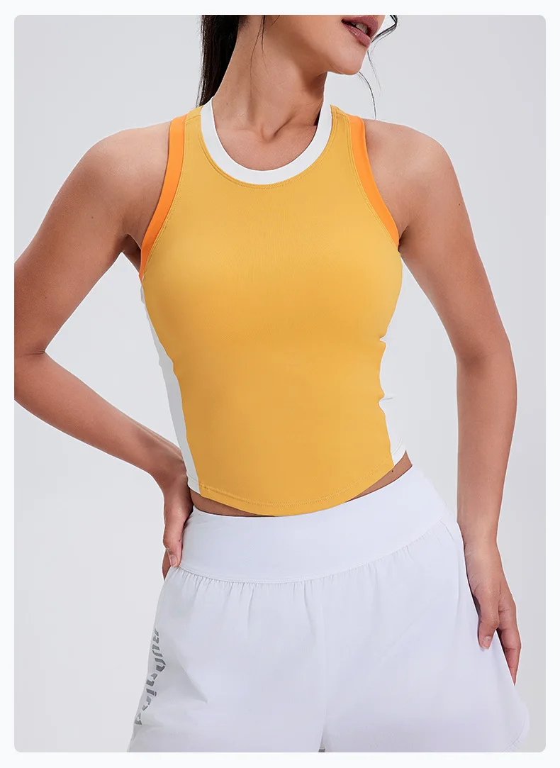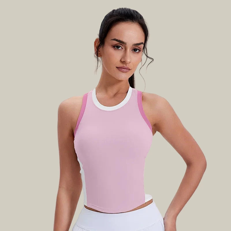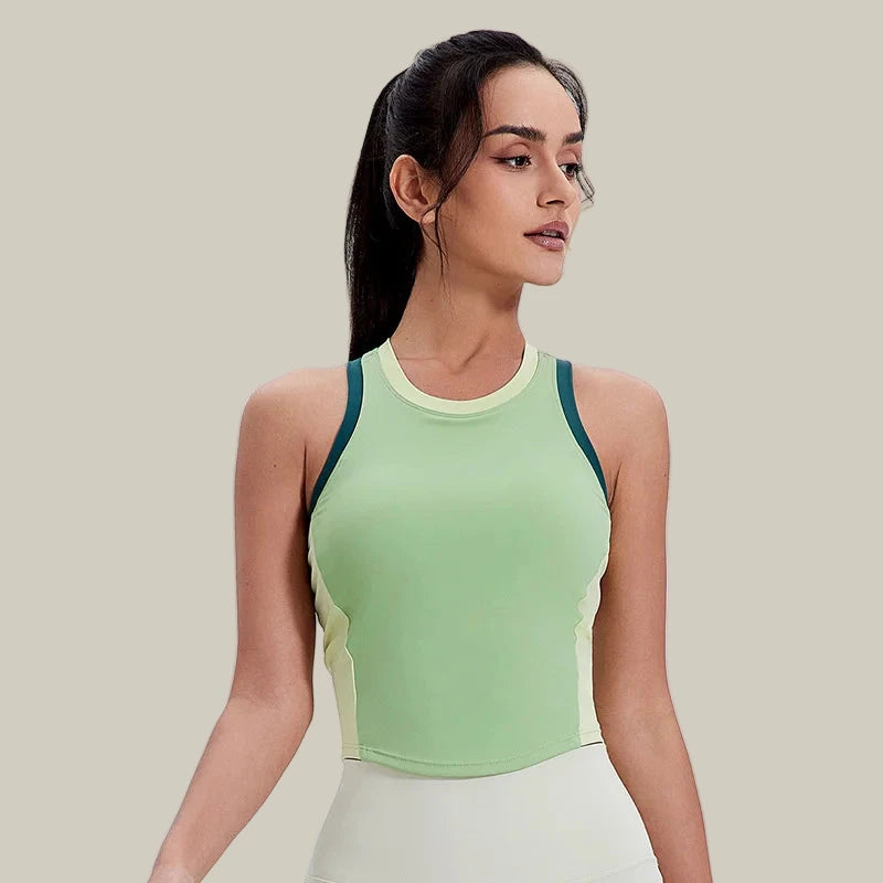 Elevate your training essentials with this performance crop top — a sleek blend of support, style, and freedom of movement. Designed with a classic round neckline and subtle contrast details, it features a soft, breathable fabric that dries quickly and keeps you cool through every workout. The built-in padding provides light support with a natural shape, while the minimalist silhouette delivers that modern, elevated look — perfect for yoga, running, or daily athleisure.