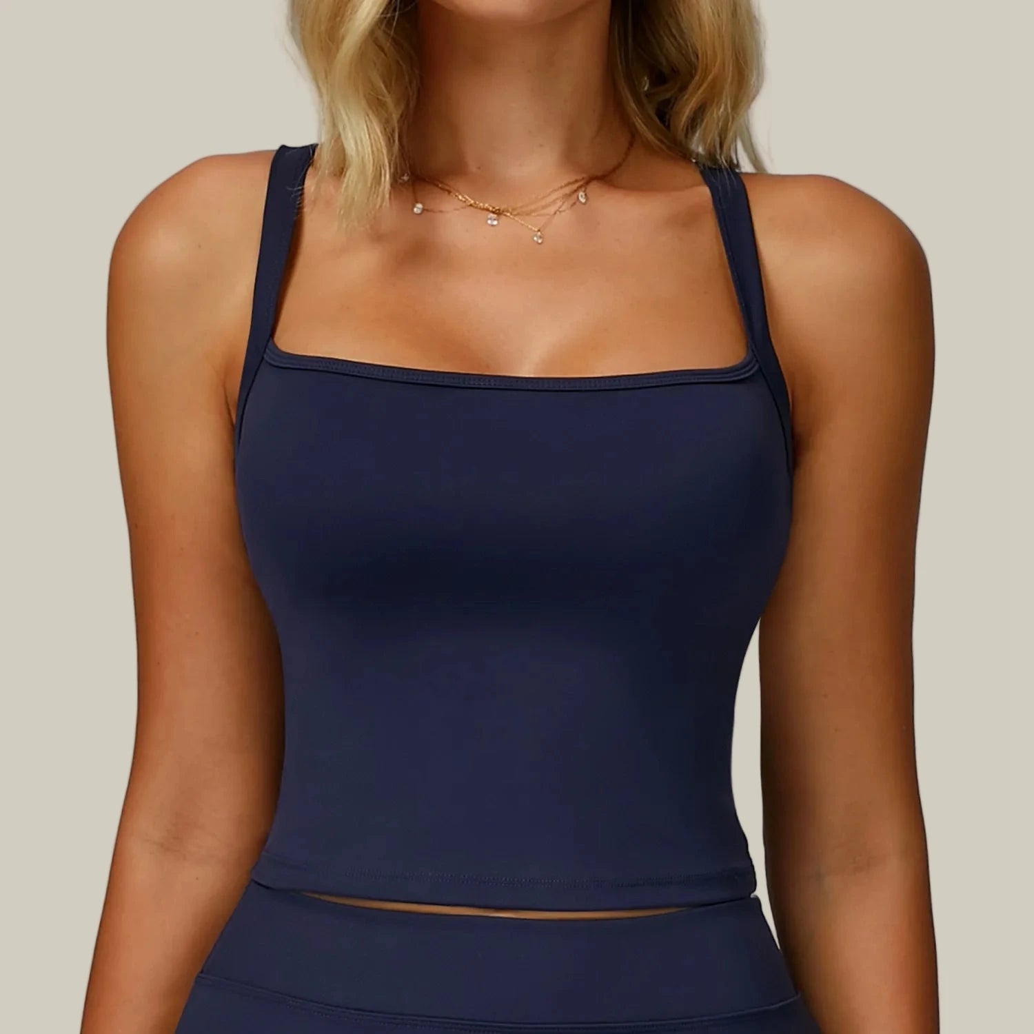 - Design: Seamless cropped tank with clean neckline