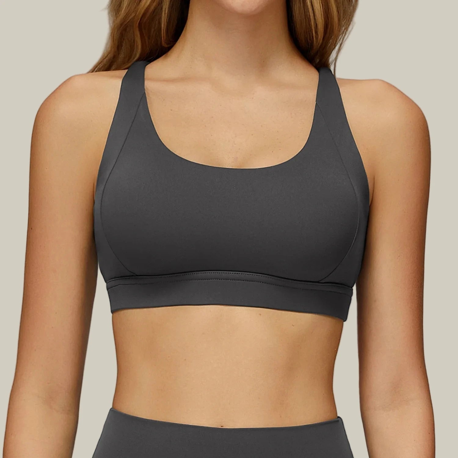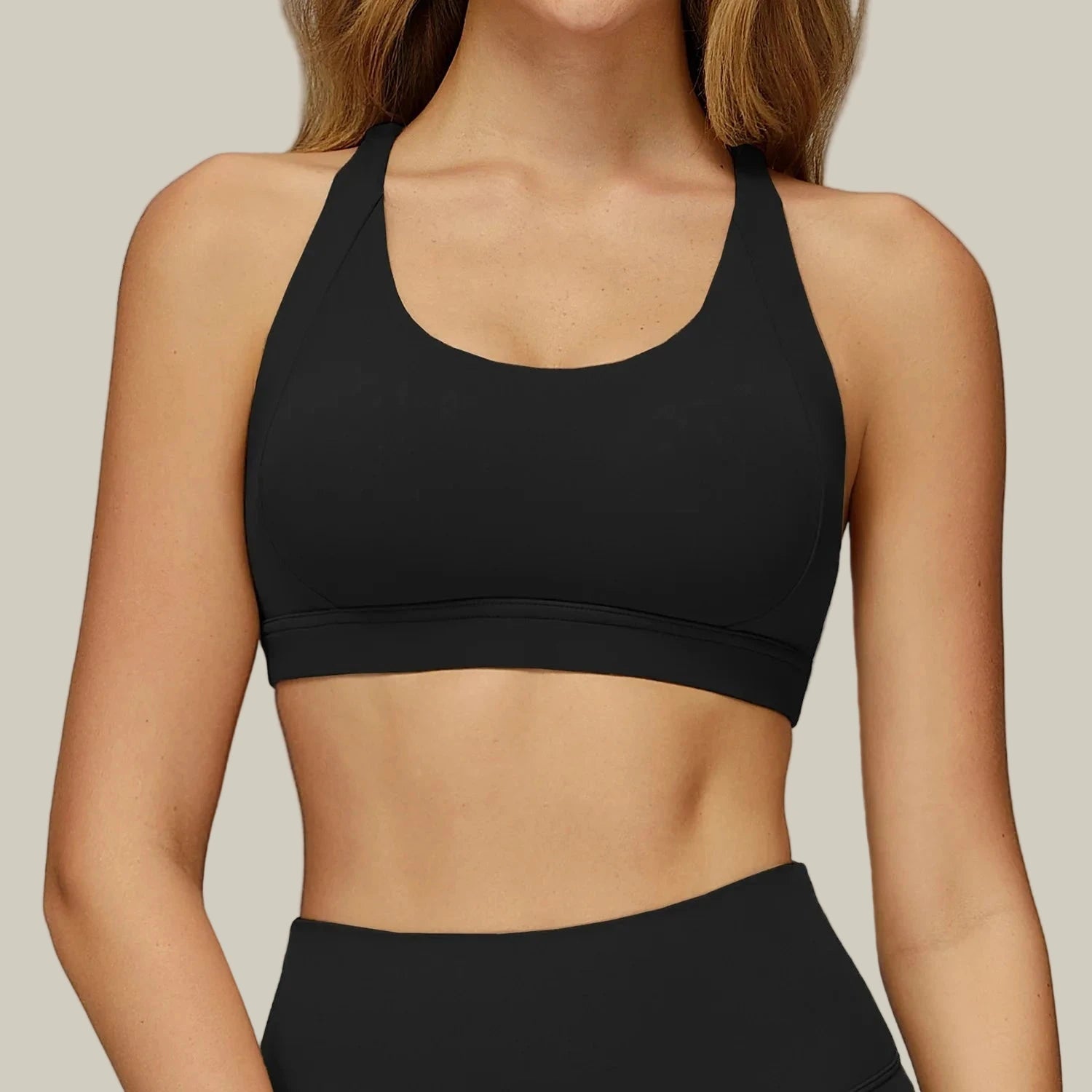 The Aero Cross Sports Bra delivers a balance of style and performance with a sculpting, cross-cutout design that enhances breathability and movement. Crafted from a premium nylon–spandex blend, it offers a smooth, second-skin feel with gentle compression and quick-dry comfort. Perfect for yoga, running, or studio training, this bra supports your every move while keeping a sleek, minimal aesthetic.