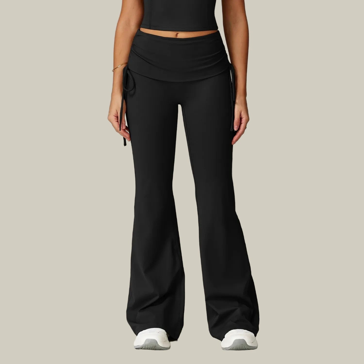 - Waist: Adjustable high-rise waistband with drawstring