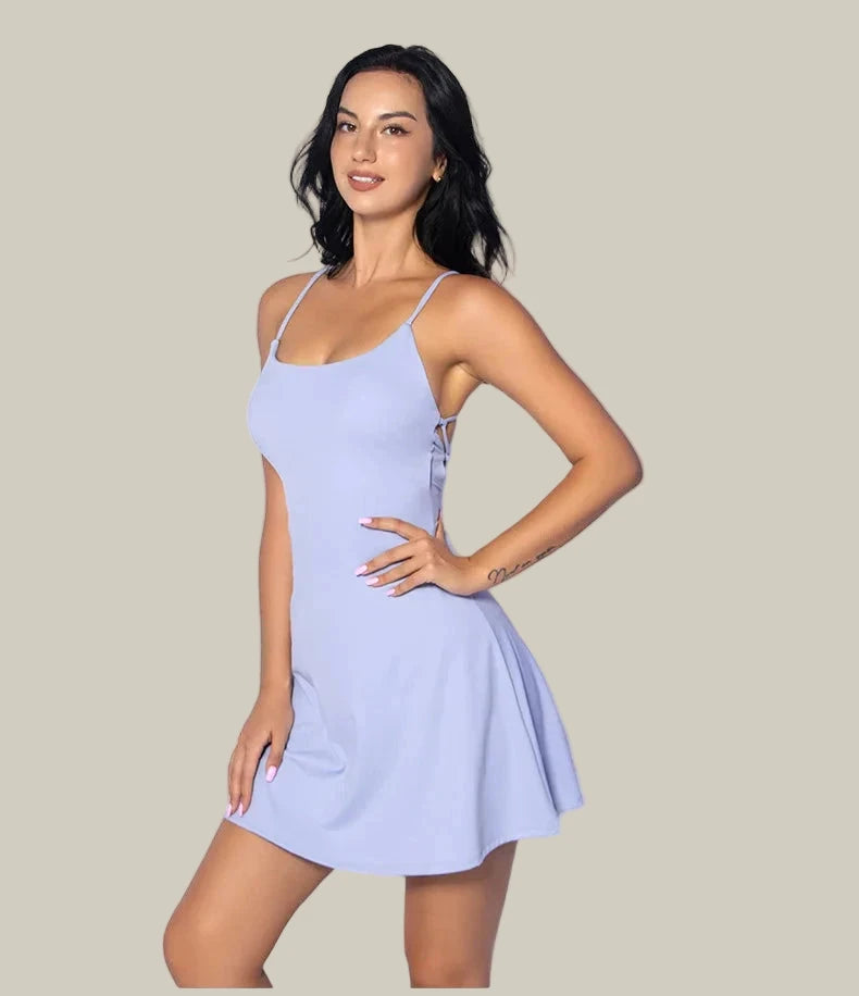Move freely and confidently in the Grace Court Dress — where elegance meets performance. This sleeveless tennis dress features a refined lace-up back and built-in shorts for seamless comfort and coverage. Crafted from a premium spandex blend, it delivers a soft, breathable, and quick-drying feel that keeps up with your every move — whether you’re on the court, at the gym, or enjoying a sunny day outdoors.