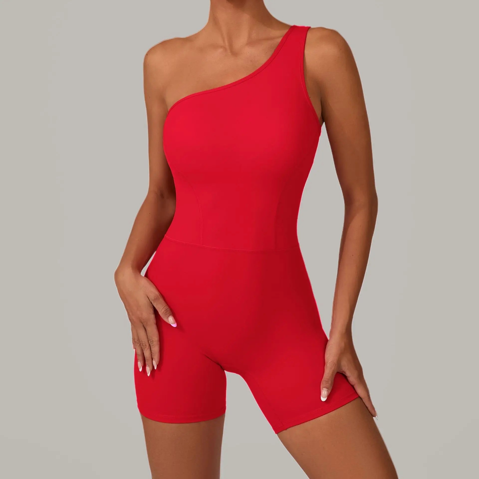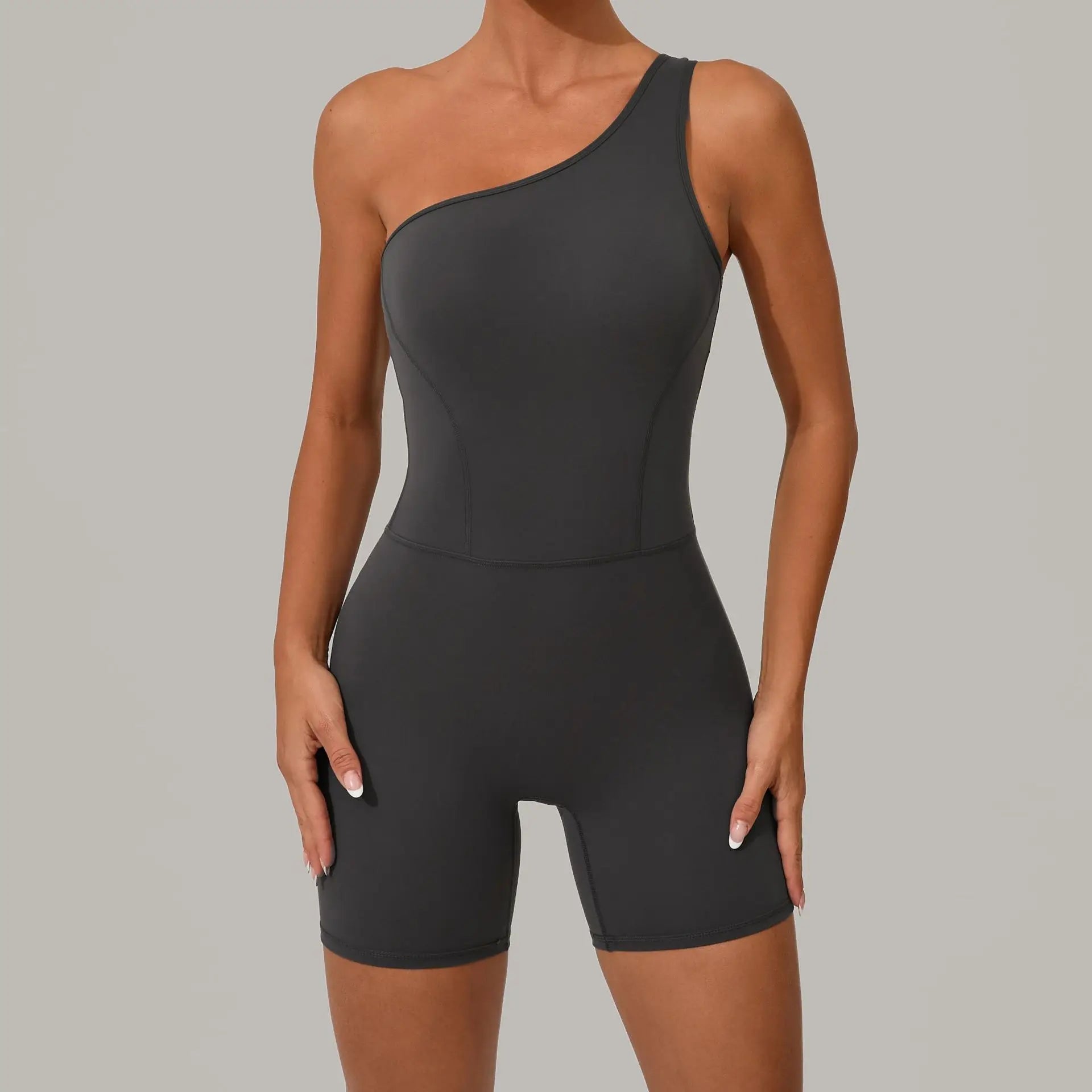 • One-piece yoga jumpsuit with asymmetrical one-shoulder design